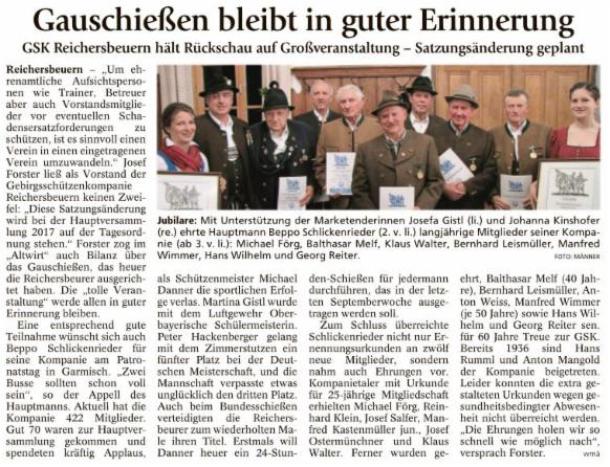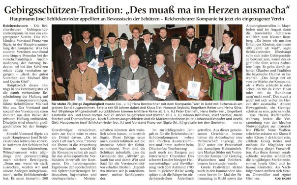 Kompaniejahrtag und Schützenball am 28.10.2017 Tölzer Kurier vom 16.11.2017