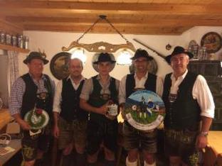 Geburtstagsschießen von Peter Hackenberger Im Rahmen des Kranzlschießens feierte unser Ehrenschriftführer Peter Hackenberger (2.v.re.) seinen 50. Geburtstag. Mit viel Liebe zum Detail richtete der Peter dazu ein Geburtstagsschießen mit einem historischen Zimmerstutzen im Schützenhaus aus. Nach dem Essen konnte sich jeder der 35 Schützen, die an den Stand getreten sind, einen der "bärigen" Preise aussuchen. Gewinner der von Hackenberger gegebenen Geburtstagsscheibe war Peter Pirchmoser Junior (2.v.l.), der sich riesig über diesen Sieg freute. Zweite wurde Franziska Bernöcker (re.) und den dritten Platz belegte Michael Sixt (li.)