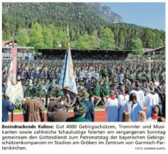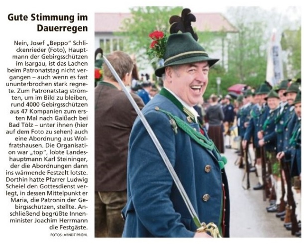 Patronatstag in Garmisch am 08.05.2016 Tölzer Kurier vom 11.05.2016 (s. Ausschnitt unten)