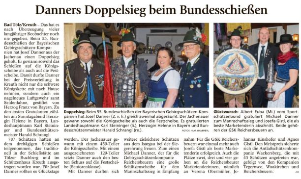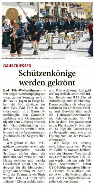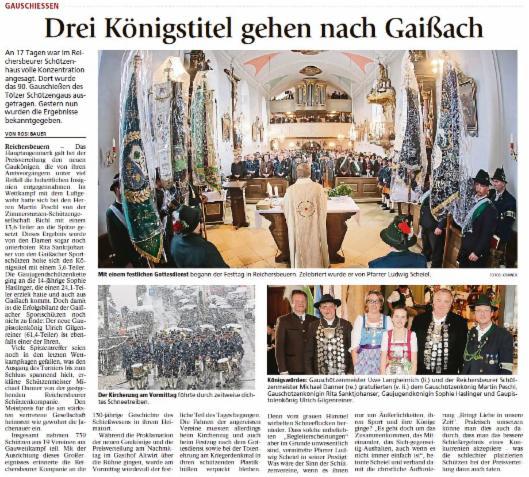 Drei Königstitel gehen nach Gaißach Tölzer Kurier vom 25.04.2016 (PDF-Version)