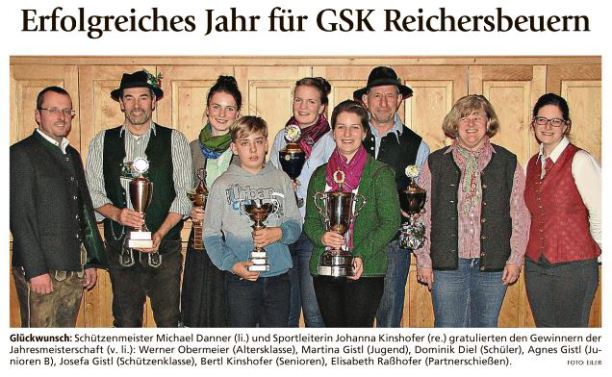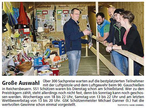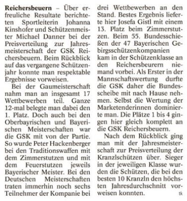Preisverteilung Jahresmeisterschaft der Kranzlschützen am 24.11.2017 Tölzer Kurier vom 14.12.2017