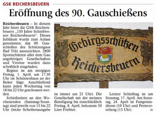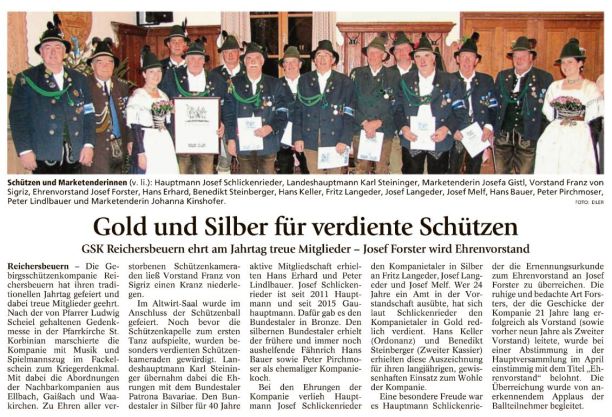Anfangsschießen am 16.09.2016 Tölzer Kurier vom 29.09.2016