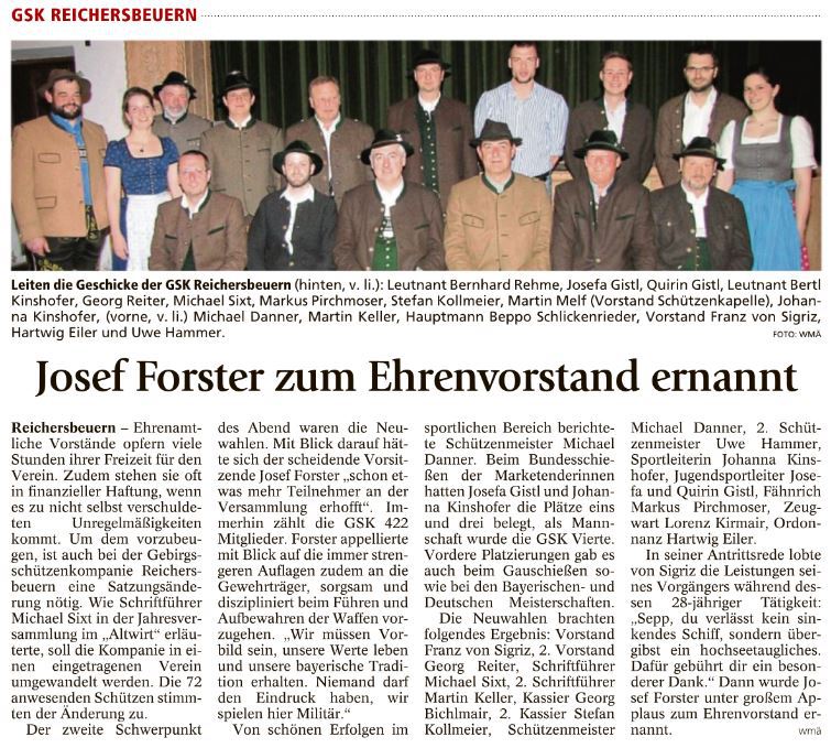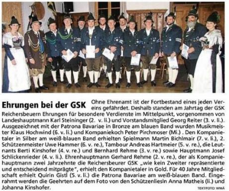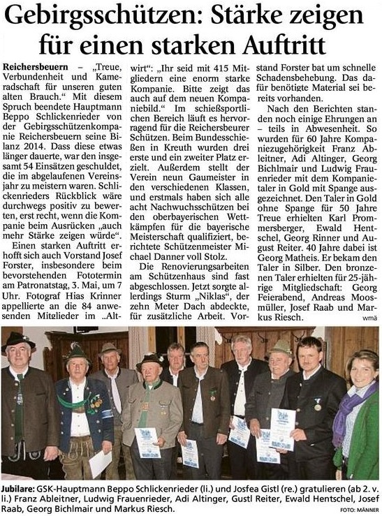 Jahreshauptversammlung der Kompanie am 11.04.2015 (Quelle: www.merkur-online.de)
