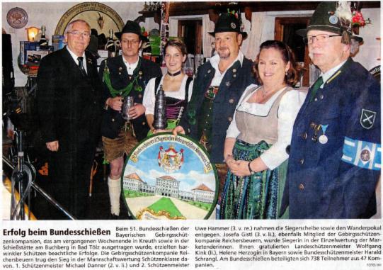 Erfolg beim Bundesschießen 2013 (Quelle: www.merkur-online.de)