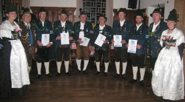 Tambourmajor Florian Schnitzlbaumer geehrt. Den Bundestaler in Bronze erhielt Manfred Kastenmüller sen. Weiterhin erhielten Schütze Klaus Sigl, sowie die Spielmänner Otto Melf und Peter Strobl als