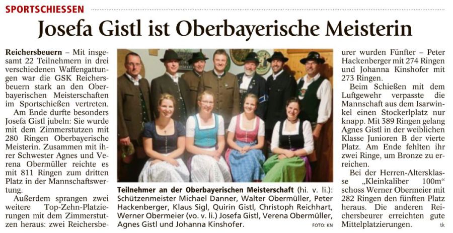 Josefa Gistl ist Oberbayerische Meisterin Tölzer Kurier vom 13.06.2017