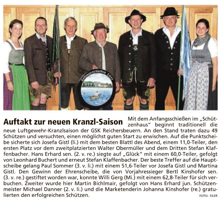 Anfangsschießen am 15.09.2017 Tölzer Kurier vom 29.09.2017